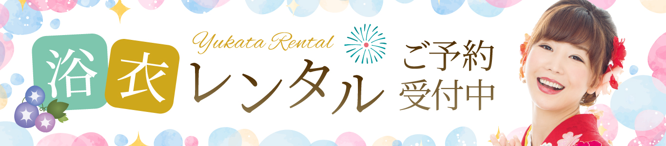 MENU浴衣メニュー 浴衣レンタル+着付け ¥7,500(税込) ~ 浴衣レンタル+着付け+まとめ髪 ¥10,500(税込) ~ 浴衣着付け(持ち込み)+浴衣用アップ ¥5,000(税込) ~ 浴衣ヘアアレンジ ¥3,000(税込) ~ 浴衣着付け(持ち込み) ¥3,500(税込) ~